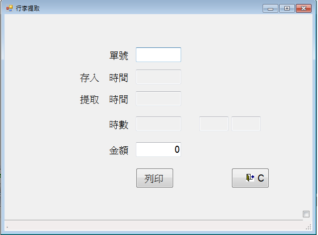行李寄存系統 一些旅行團, 或者是一大批旅客需要進入一個旅遊地點, 遊客手上拿着行李, 或拿着一些購買回來的物品, 需要找個地方放下, 以便利他們的行程. 主辦單位可使用這軟件幫助紀錄保存客人的行李, 遊客把行李放下, 拿取電腦列印的收據, 之後客戶憑收據拿取行李, 並付費用. 電腦可計算, 客戶放下行李的時數, 計算應該收取遊客的金額. 1. 設定收費